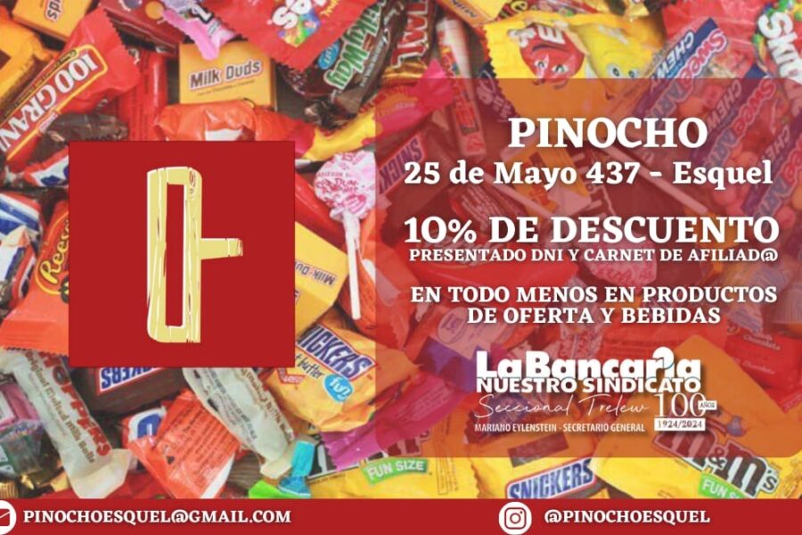 Pinocho – Descuento exclusivo en Esquel para afiliados En Pinocho, tu local de confianza en Esquel, podés disfrutar de un 10% de descuento presentando tu DNI y carnet de afiliado.…