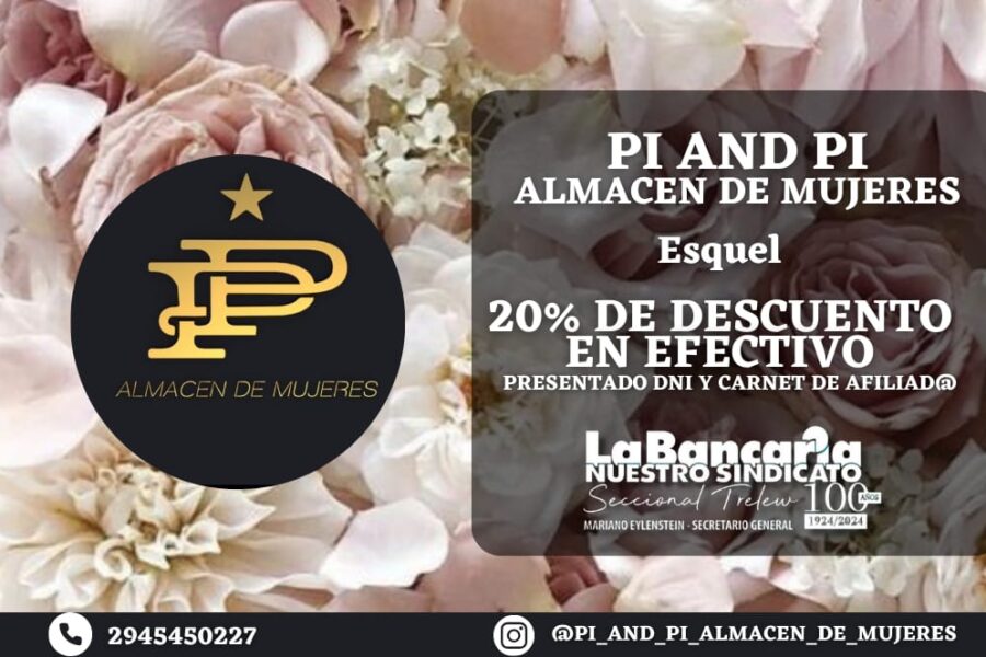 P&P Almacén de Mujeres – 20% de descuento exclusivo para afiliadas en Esquel En P&P Almacén de Mujeres, ubicado en Esquel, te ofrecemos un 20% de descuento abonando en efectivo…