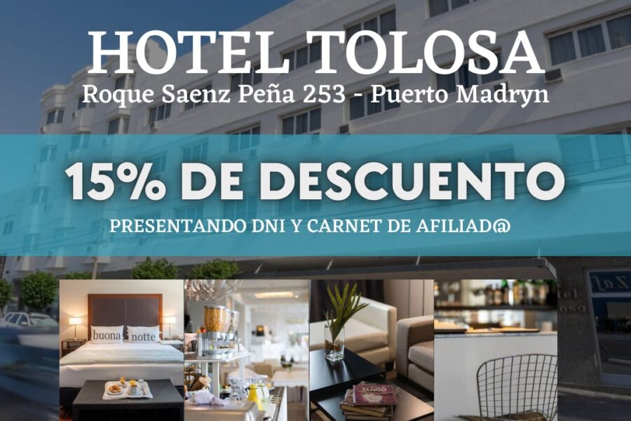 Disfrutá Puerto Madryn con todo el confort del Hotel Tolosa y un 15% de descuento para afiliados a La Bancaria Ubicado en el corazón de Puerto Madryn, el Hotel Tolosa…