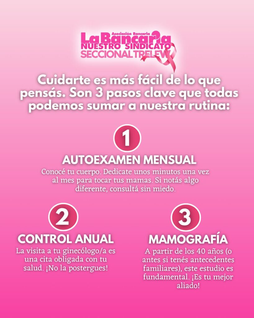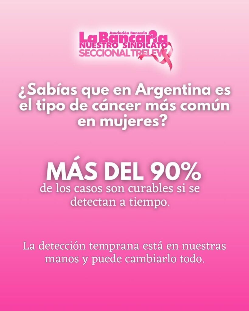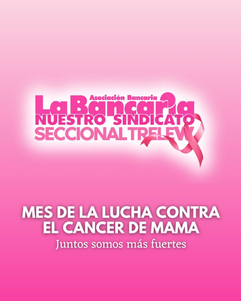 En La Bancaria Seccional Trelew nos sumamos con fuerza a la concientización y lucha contra el cáncer de mama. Cada vida cuenta, y la detección temprana puede hacer la diferencia.